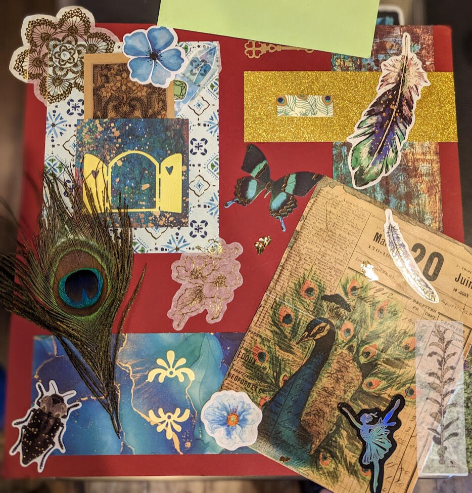 My team of talented assistants work tirelessly day and night to ensure that the materials used to make your collage are batted, booped, and covered in obscene amounts of cat hair. Only then do they calm down enough to help me with the impossible task of gluing pieces of paper together, as demonstrated below.